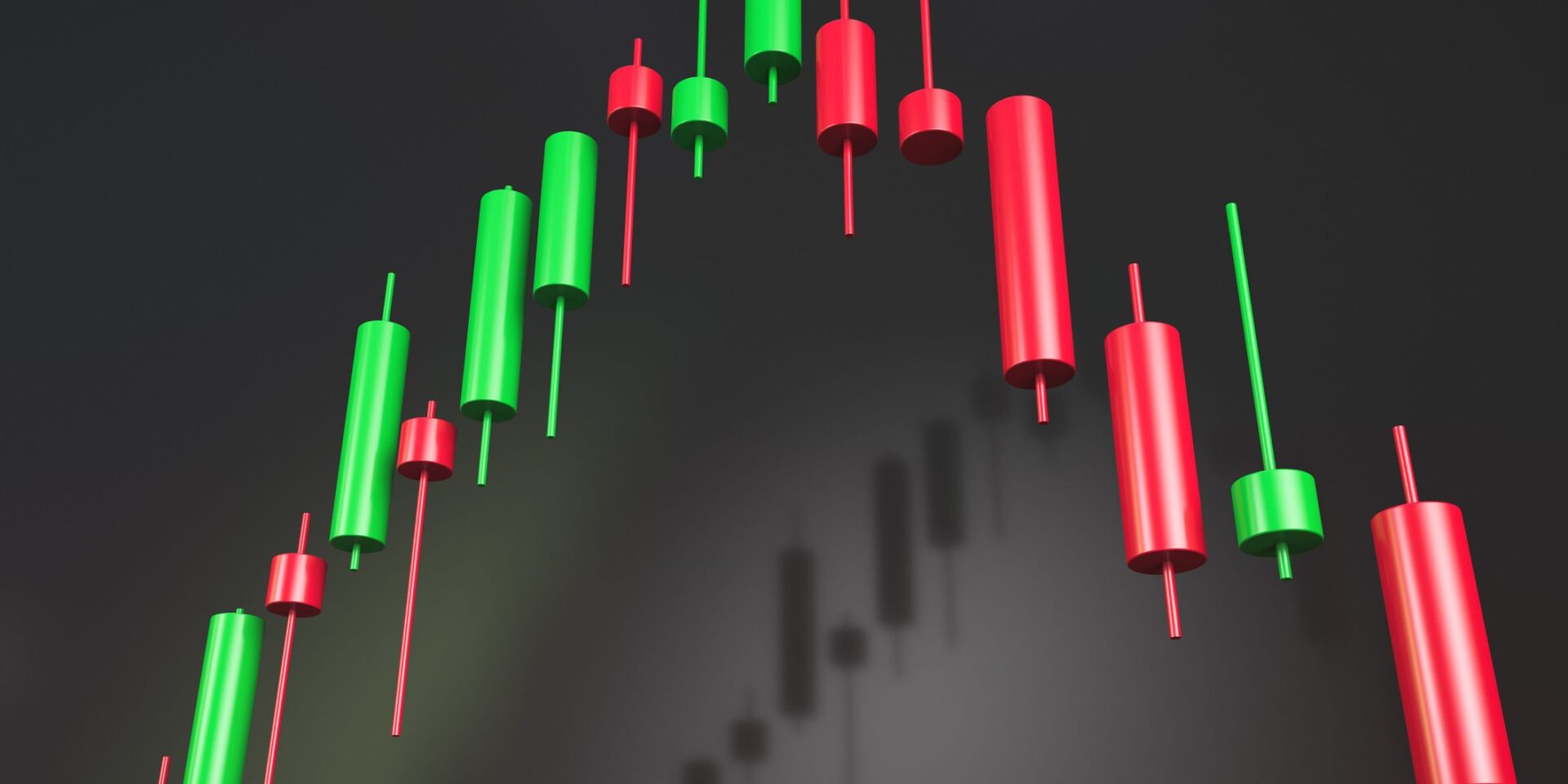 closeup of digital bar chart with green bars going up and red bars going down